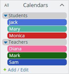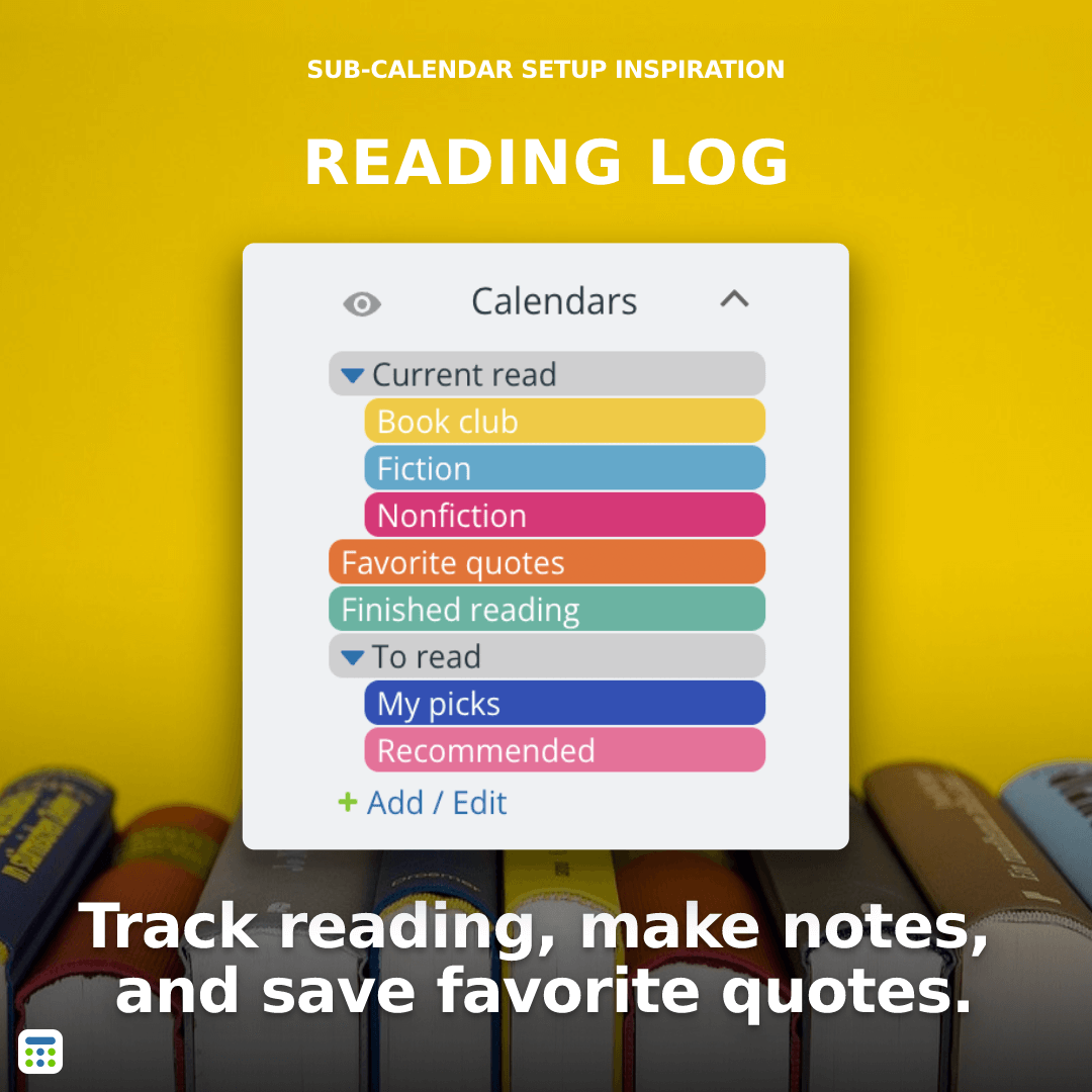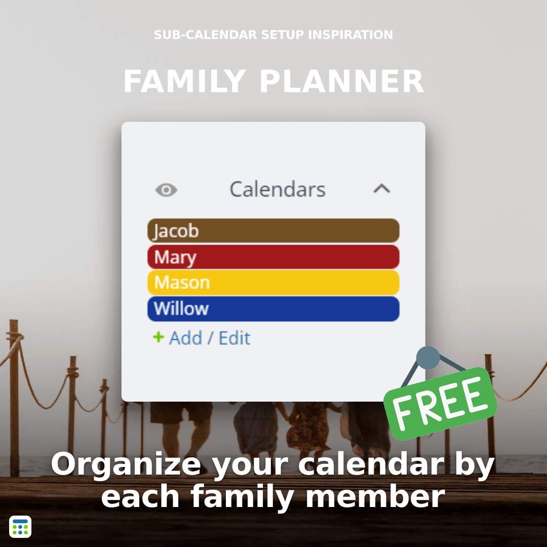 There are a million ways to organize people, resources, projects, processes, ideas, statuses… Imagine a Teamup sub-calendar as a theme list of things you keep track of. Make a master calendar with color-coded sub-calendars (as many as you need) to be the one hub for all the lists in your life or organization, or any context of its own. Shown here are some of the creative ways to structure sub-calendars within one master calendar.