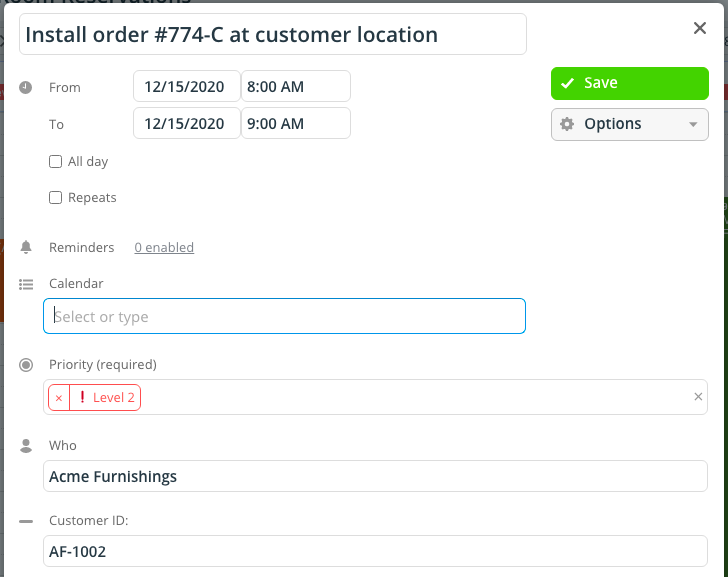 Capture the context of any notes or events with a custom text field for reference ID. Input the Customer ID, project name, or work order # so it is easy to retrieve all the info for that customer or project anytime.