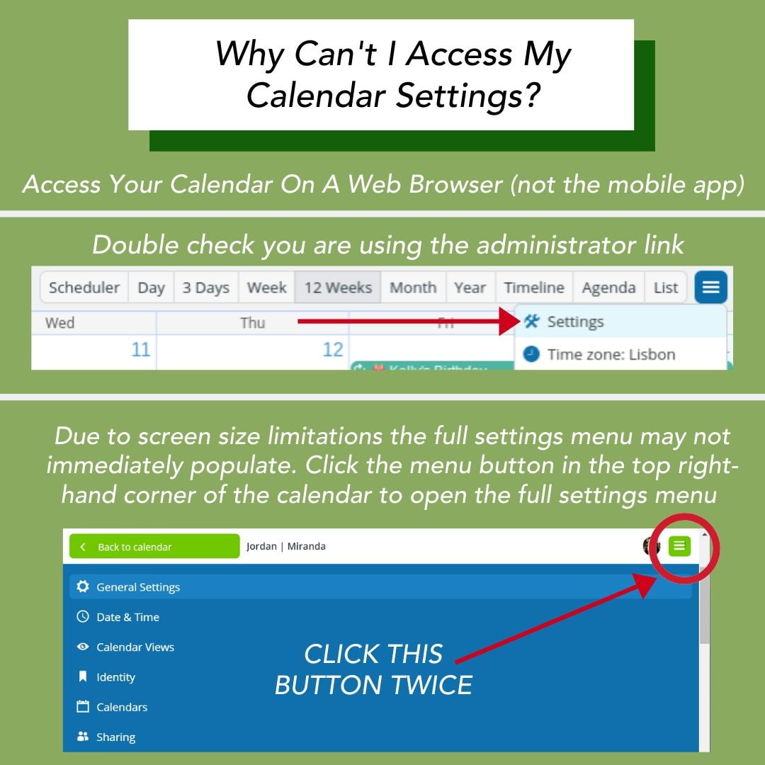 When you need to make changes, add calendars or users, or adjust settings on your calendar.