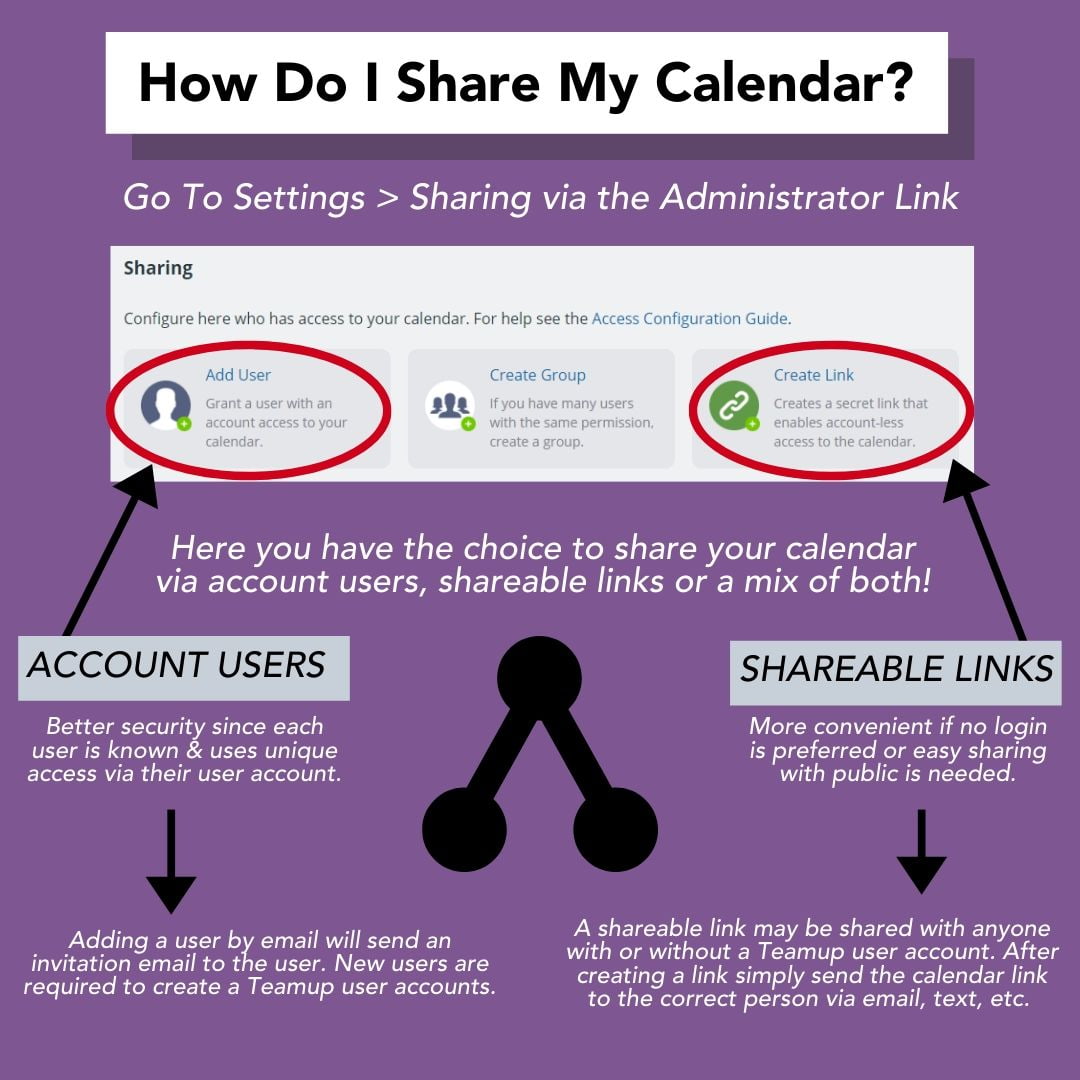 When you want to share your Teamup calendar with a user or via a shareable calendar link.