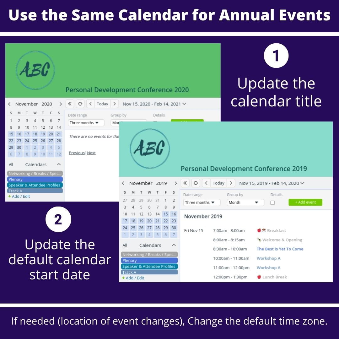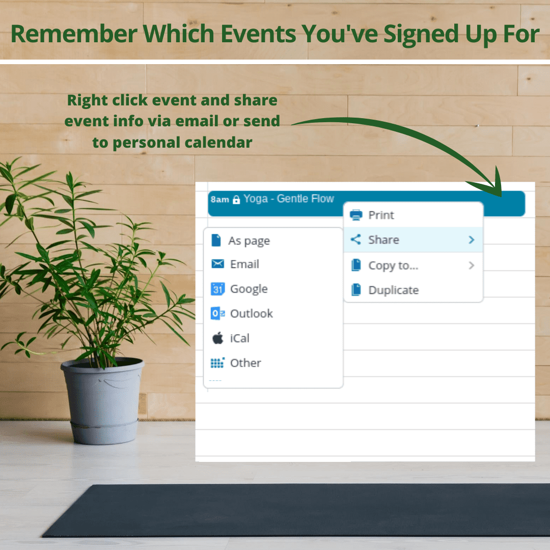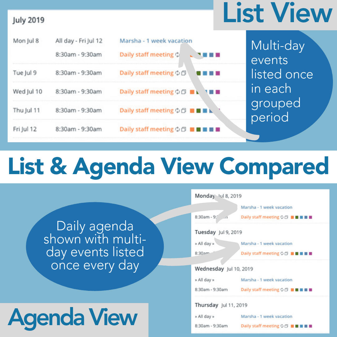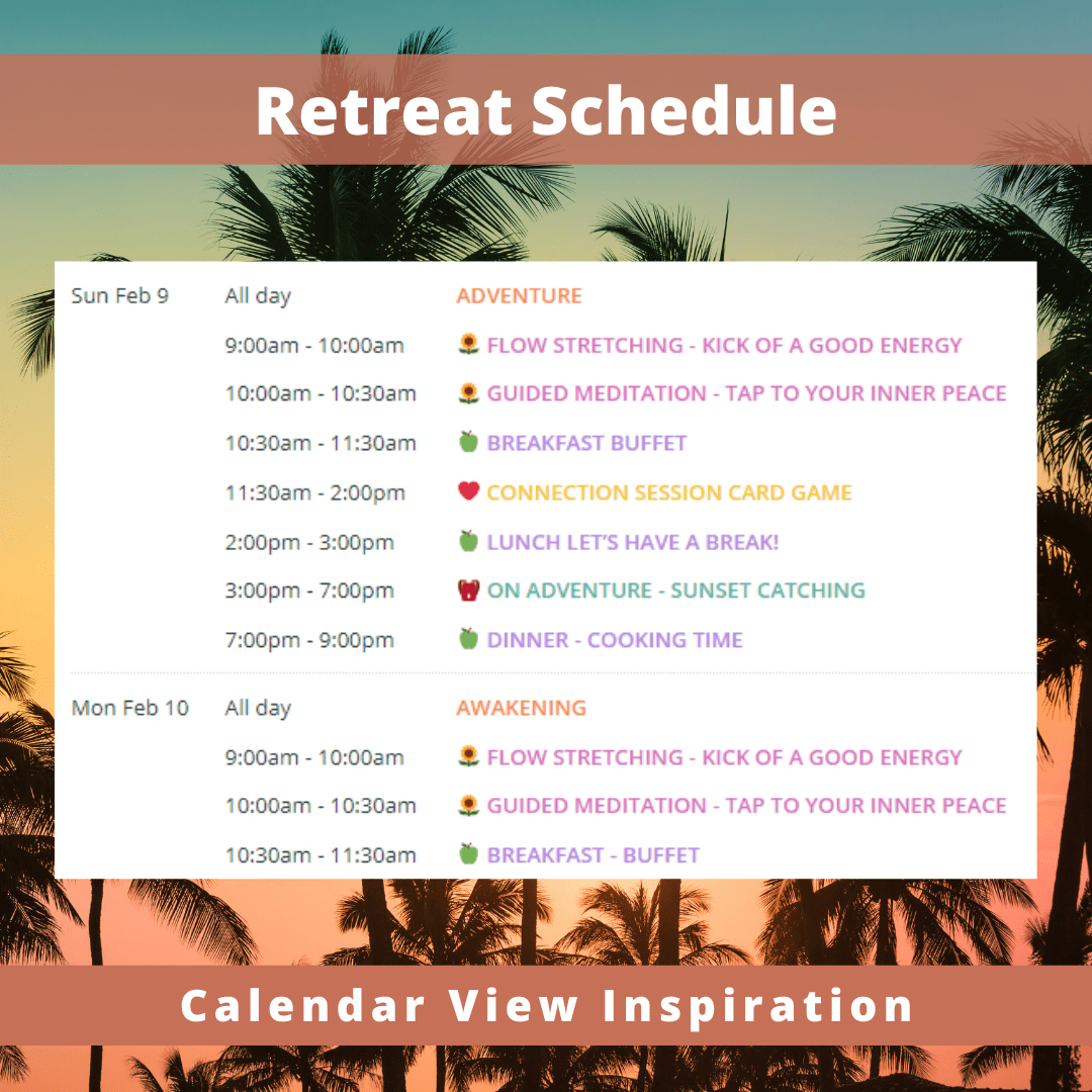 Need to show important retreat info? Use our “list view” feature to see upcoming events at a glance.