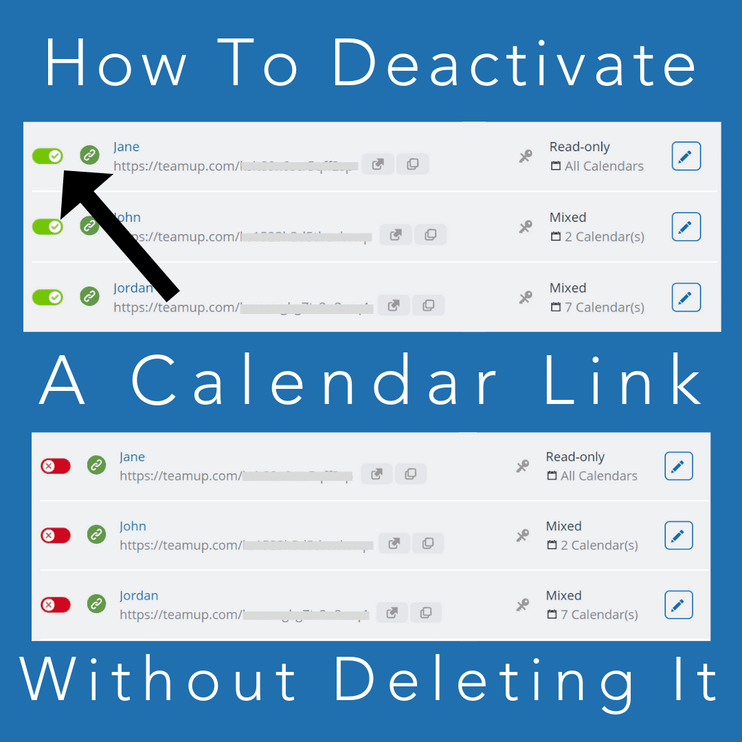 Temporarily deactivate a calendar link without deleting it. Reactivate again when needed.