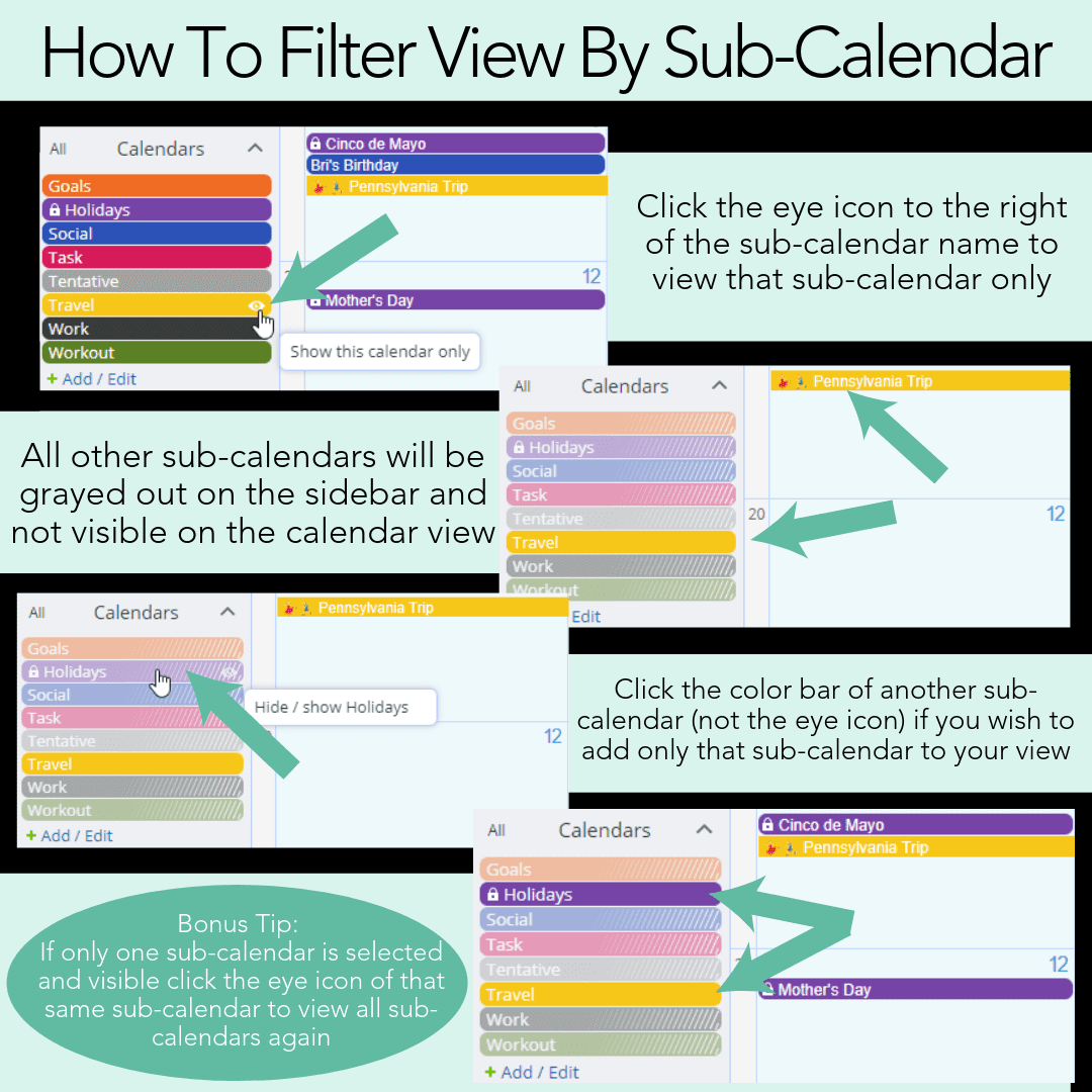 Big family? Set up sub-calendars for each family member to keep everyone in the loop!
