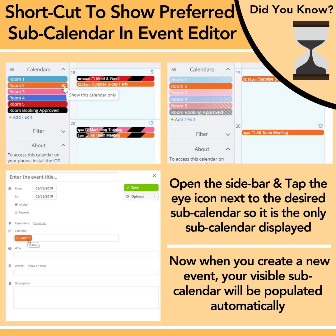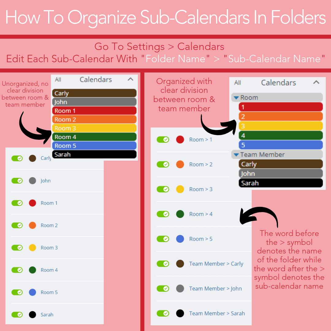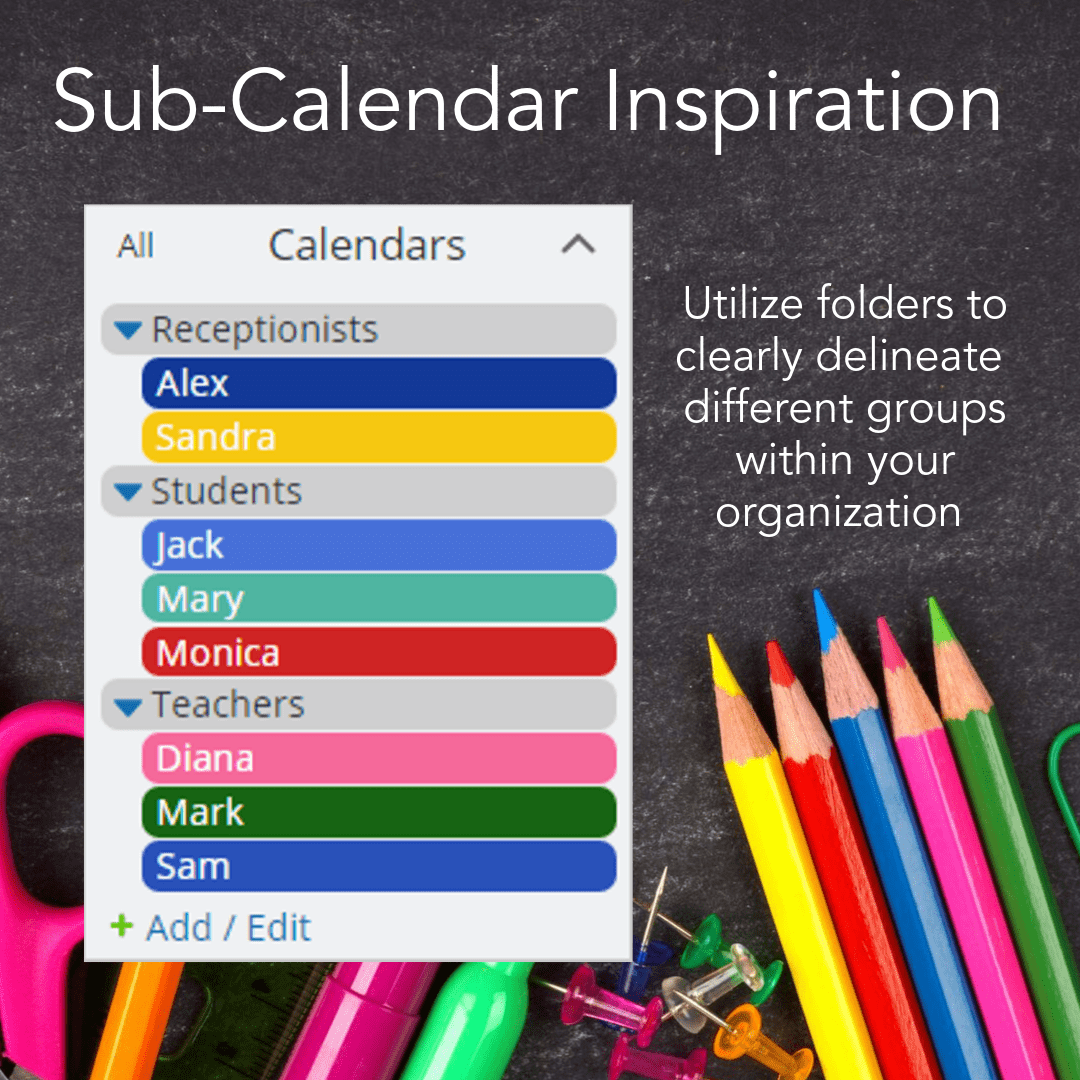 When you want to add a new resource, team member, space, etc., add a new sub-calendar.