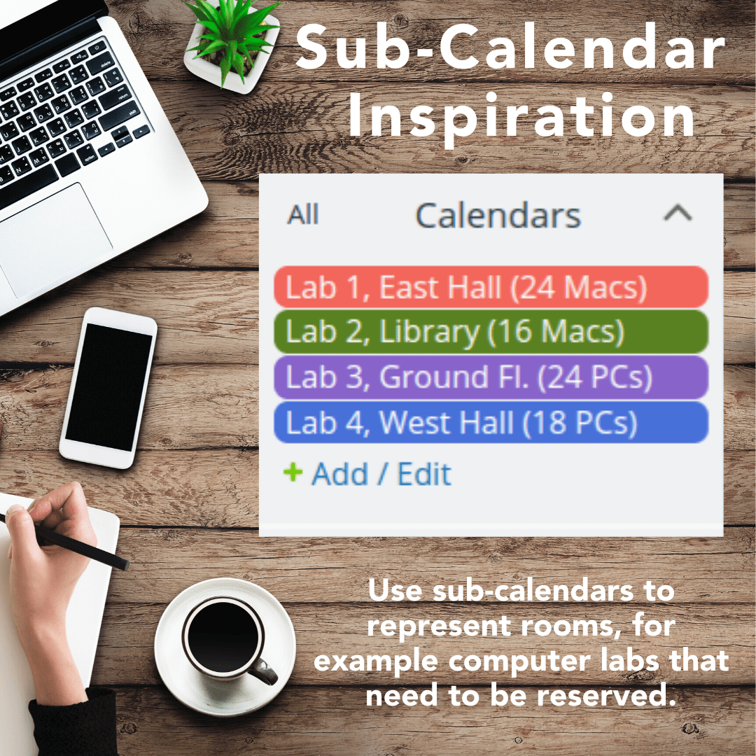 When use of space needs to be coordinated to avoid conflict, give each its own sub-calendar