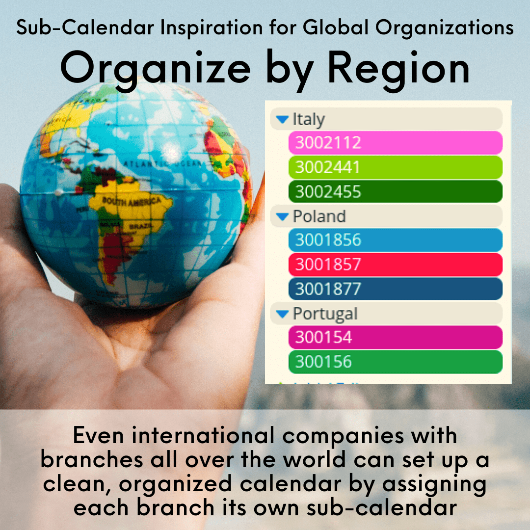 When you want to organize sub-calendars by region or area. Sub-divide regions as needed.