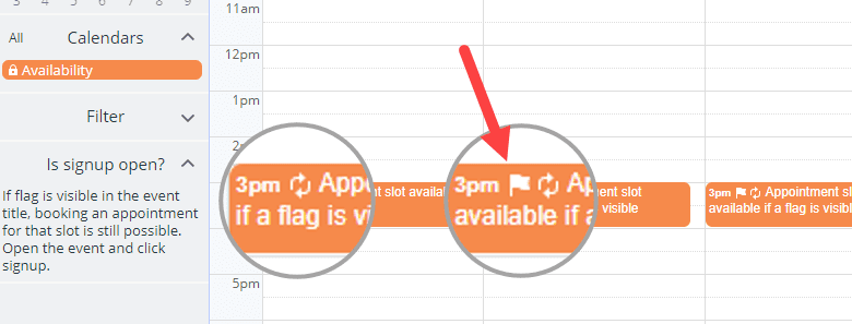 - Enable signup in the event editor when you create a slot available for signup.