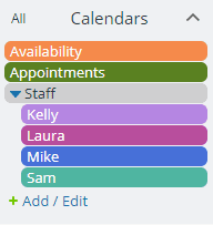 - Staff member: Customized link or account user for each individual staff member so they can add their unavailable dates/time and other info: Modify permission to their own calendar; no access (or read-only) to calendars of other coaches; read-only to the Availability calendar and the Confirmed Appointments calendar.