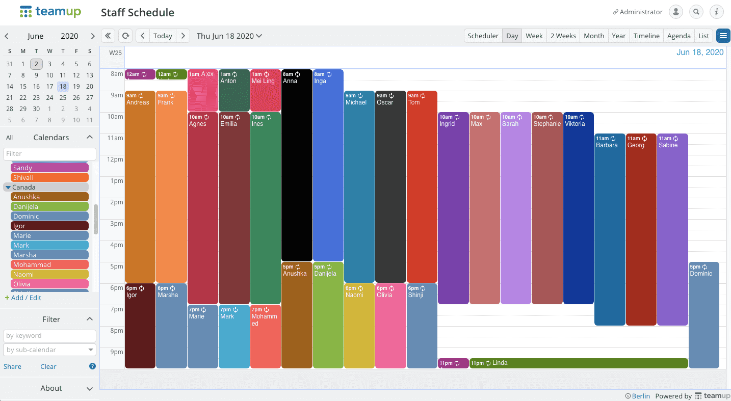 Teamup Calendar, a centrally-managed shared calendar designed specifically for teams. It’s the simple, secure, and efficient way to share information across groups with functions ranging from custom access settings to flexible display options.