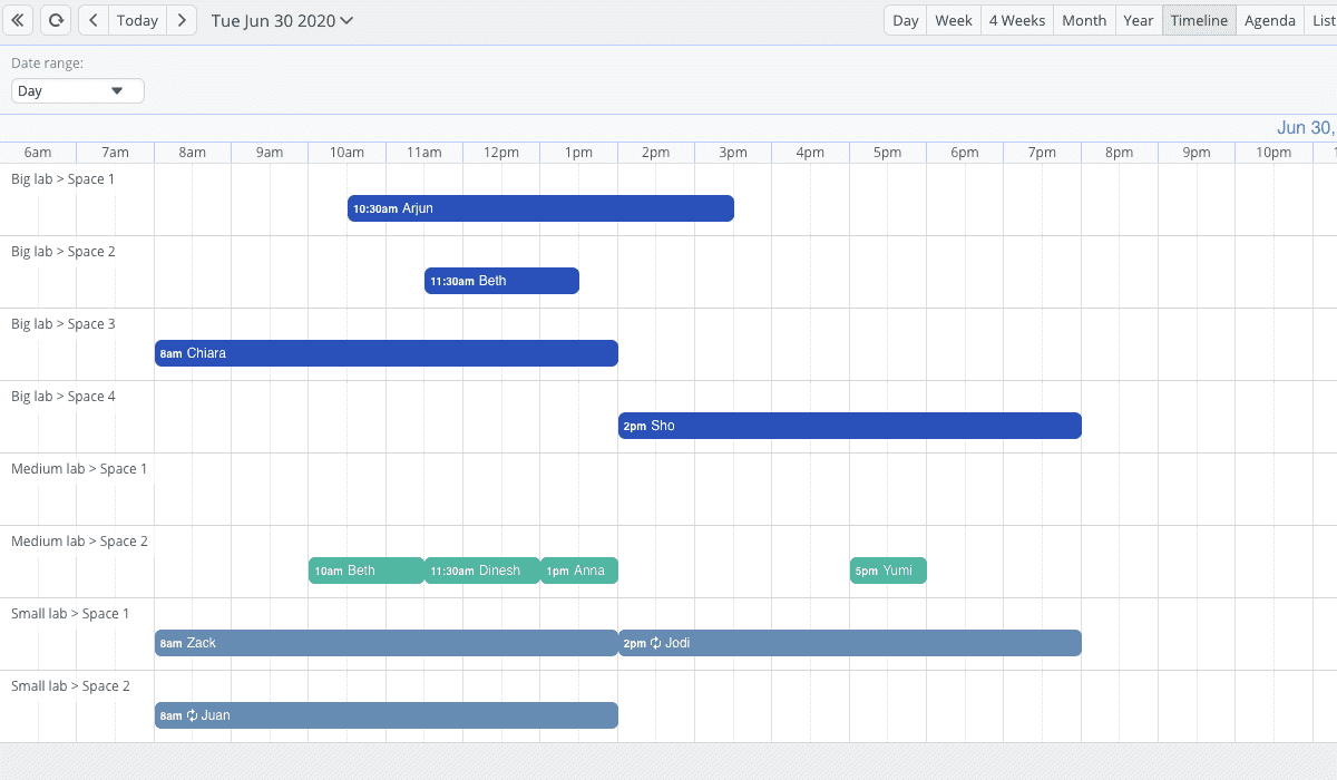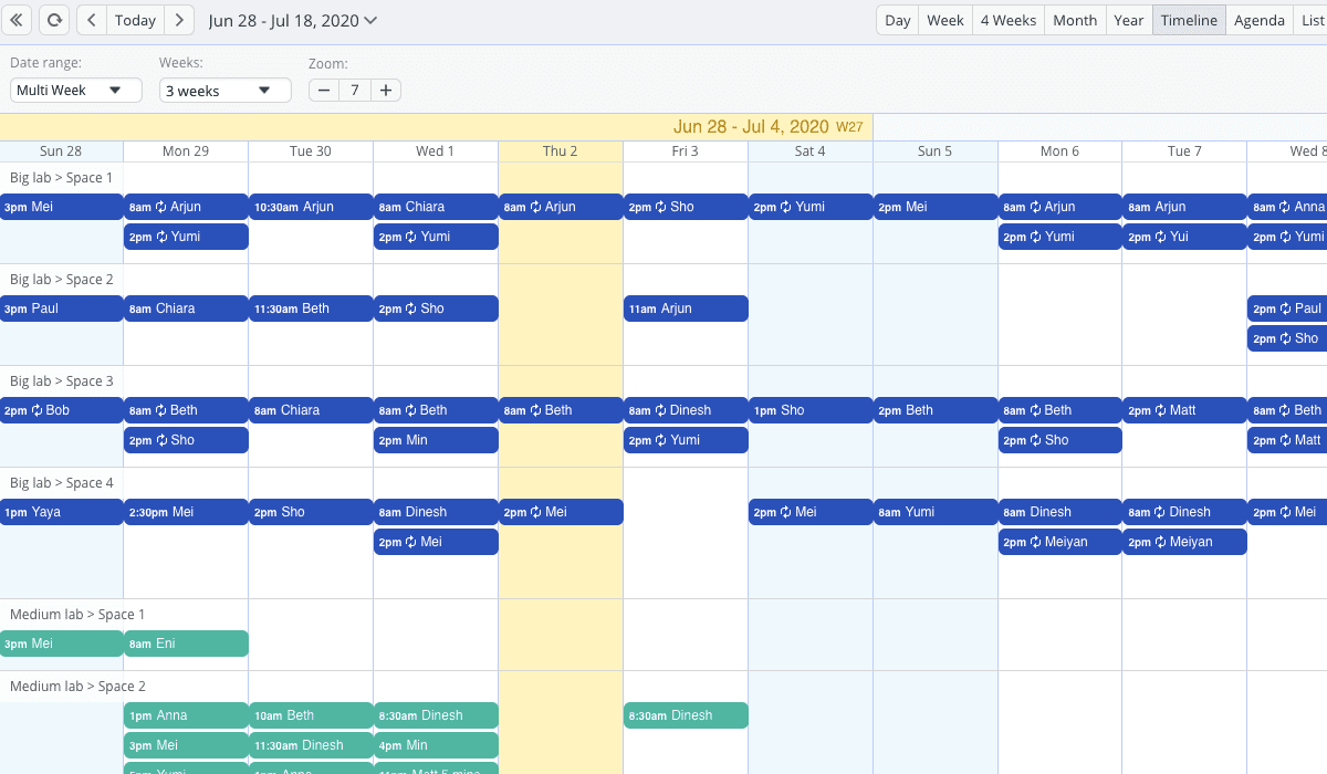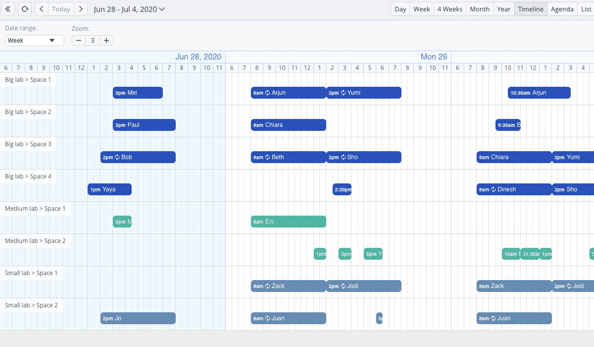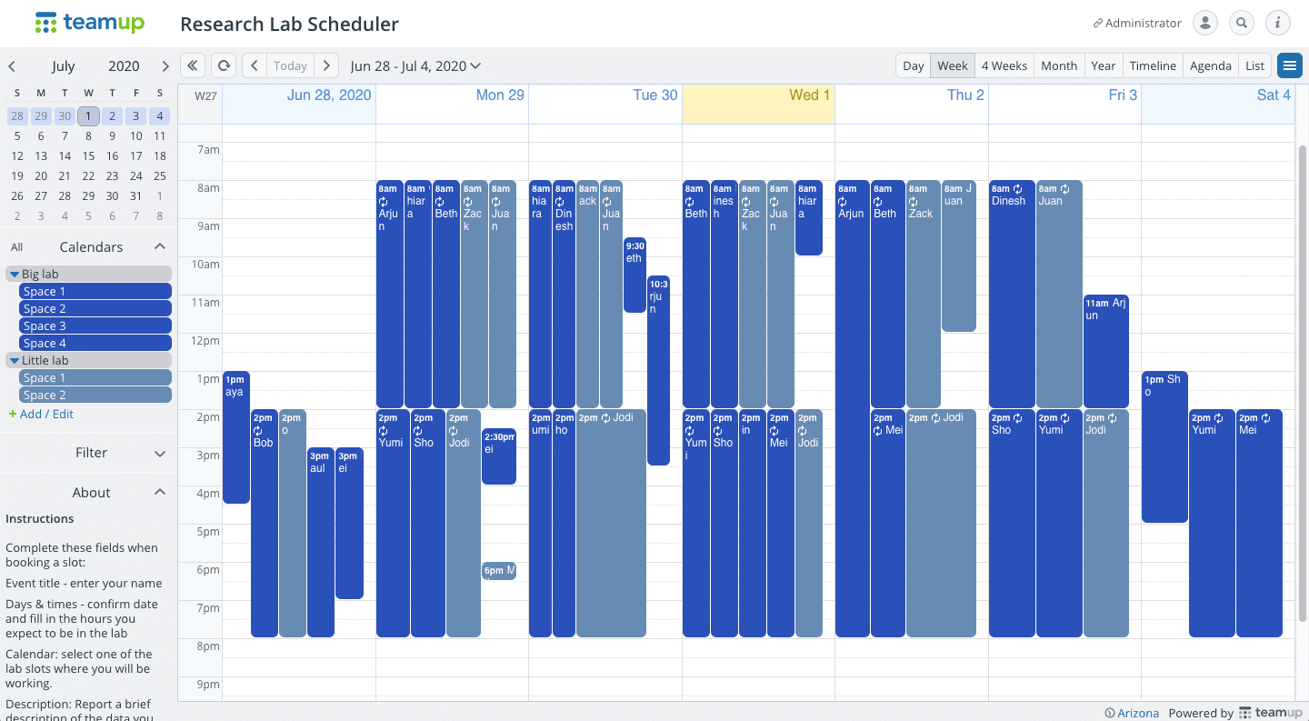 Everyone will have access to the team’s schedule overview and when certain lab slots or equipment are available to book.
