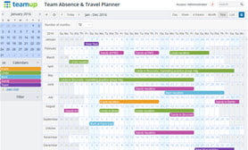 - Calendar views: Explore the Table view, Scheduler view, and the Year view, unique to Teamup.