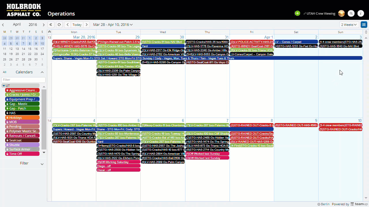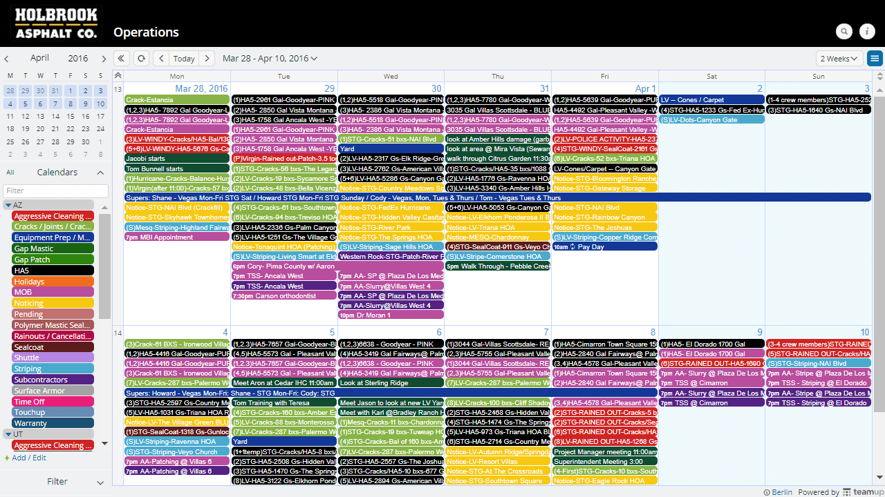 - Color-coded sub-calendars for teams, resources, projects, locations, workflow, anything you need to organize or schedule.