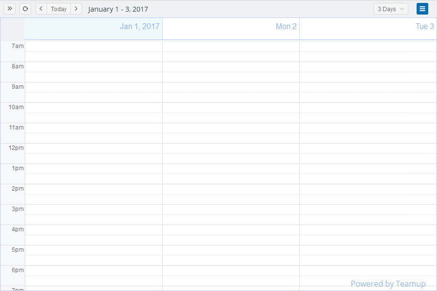 - Calendar views: Teamup has many unique and adjustable calendar views. Switch to another view in the top right-hand corner. Adjust the settings and calendar resolution for the best display for your purposes.